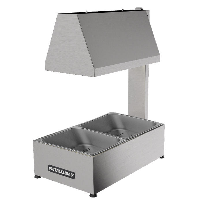 Equipamento desenvolvido com a finalidade de conservar aquecido alimentos fritos. Com seu aquecimento feito através de lâmpadas infra vermelhas de secagem, ele mantém em temperatura agradável para degustação de alimentos como salgados, batatas fritas, polenta, aipim entre outros petiscos. Fabricado externamente em aço inox 430 escovado e internamente em aço inox 304, é um equipamento robusto e de fácil manipulação, dispostos em três modelos: MCF - 1CP no qual é equipado com uma cuba padrão GN 1/2 x 100 mm de profundidade e o modelo MCF - 01CG no qual é equipado com uma cubas padrão GN 1/1 x 100mm de profundidade e o modelo MCF - 2CP no qual é equipado com duas cuba padrão GN 1/2 x 100 mm de profundidade. Disponíveis nas tensões 127V ou 220V.